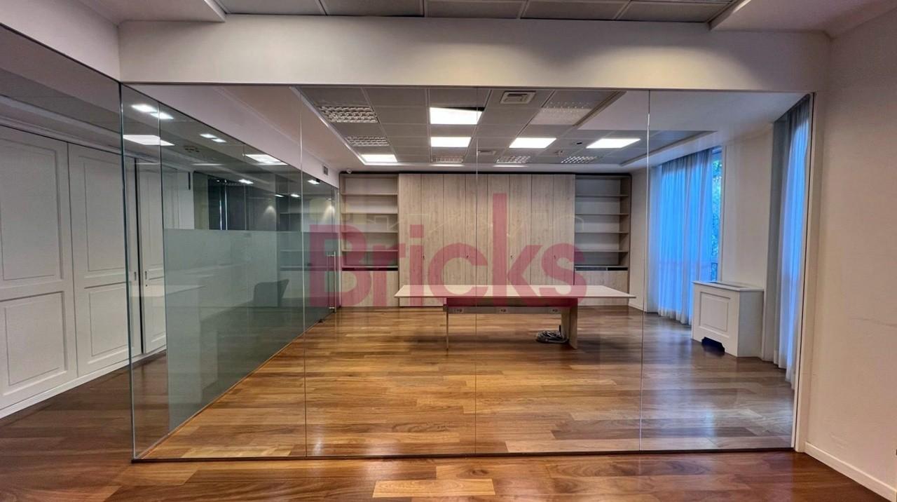 Gli uffici non sono collegati internamente. Pavimentazione in marmo e parquet, riscaldamento e aria condizionata canalizzati (incluso nell´importo delle spese condominiali), silenzioso, affaccio su un gradevole giardino condominiale, con presenza del custode.